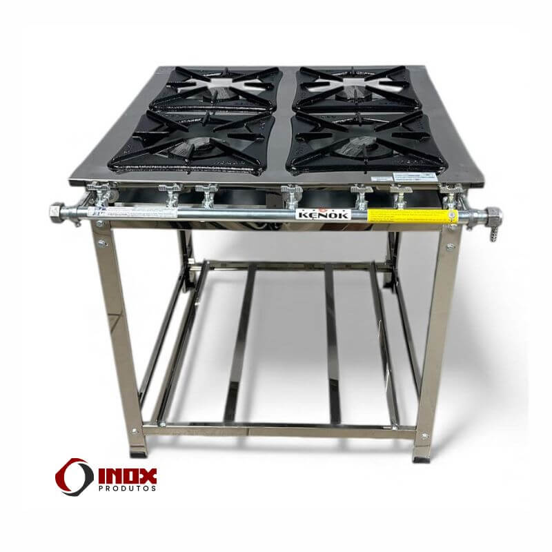 As 4 bocas no padrão 40x40 cm garantem agilidade, produtividade e melhor distribuição do calor no preparo simultâneo.