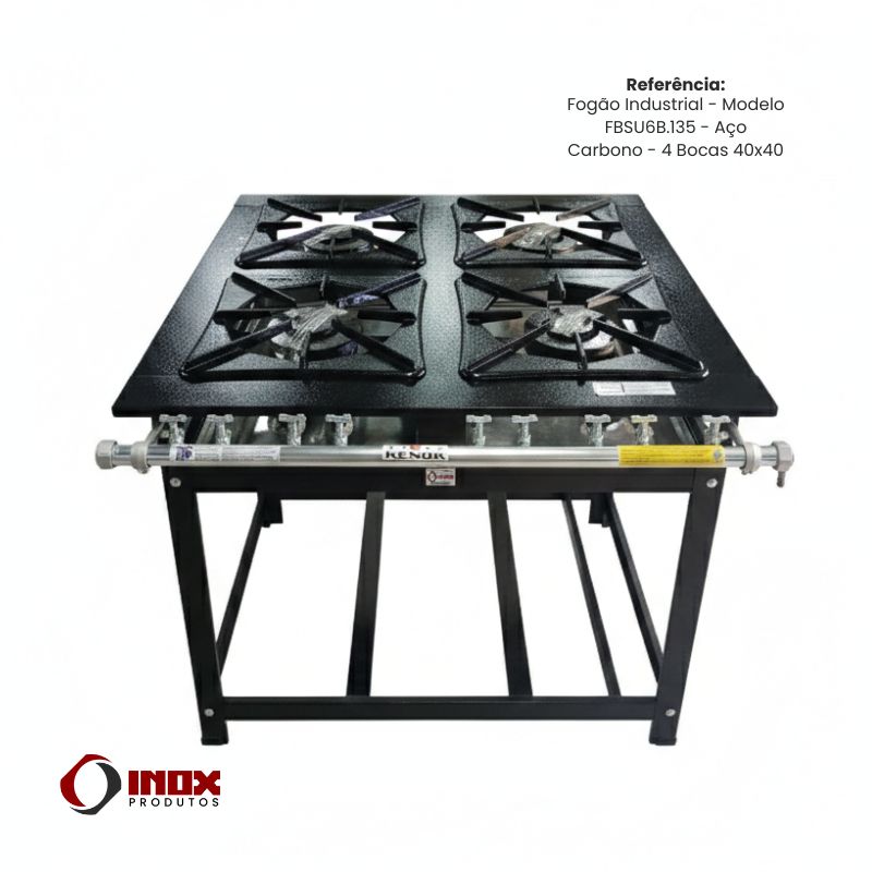 O Fogão Industrial 4 Bocas 40x40 em Aço Carbono – FBSU4B.135 é a solução ideal para quem busca potência, resistência e confiabilidade, atendendo às demandas de cozinhas com alto volume de produção.